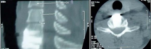 Using postoperative imaging methods (X-ray, CT) we did not observe any dislocation or instability signs in the used implants in the entire group of patients. In two patients (glass -ceramics) partial loosening of screws in the plate was observed without the implant or the plate being dislocated. Steady position of fixation on images correlates with postoperative evaluation of neurological lesion according to the Frankel scale (30% of improved patients).