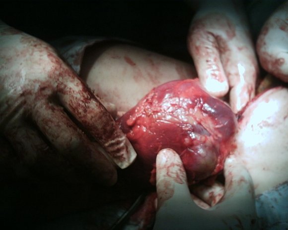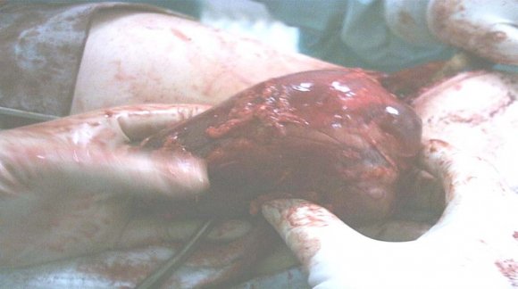 The characteristic findings were thick and irregular wall and heterogeneous contents of the cystic mass. The cyst contained bloody fluid and a hemorrhagic degenerating mass. Pathohistological examination showed evidence of malignant hemorrhagic renal cyst. Which is treated by surgical intervention and usually nephroctomy.