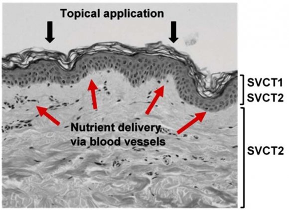 ![Figure 11: Delivery of nutrients to the skin [131]. The location of the vitamin C transport proteins SVCT1 and SVCT2 are indicated. Red arrows depict nutrient flow from the blood vessels in the dermis to the epidermal layer. Nutrients delivered by topical application would need to penetrate the barrier formed by the stratum corneum.](https://medicalresearchjournal.org/index.php/GJMR/article/download/1791/version/102023/3-Skin-Aging-and-Modern-Age_html/32498/image-9.png)