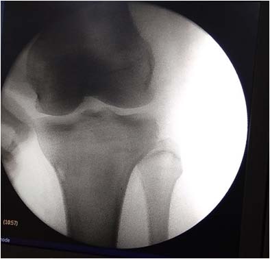 Case 1-A 50-year-old lady presented with pain in the left knee of one year duration. There was no improvement with conservative treatment in the form of anti-inflammatory medication and physiotherapy. X-ray of the knee showed calcification in the LCL region (Fig. 1a 1b). The technique of arthroscopic excision of calcification in LCL.