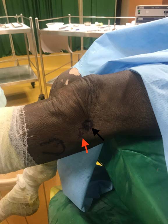 Both cases were operated after institutional ethical committee clearance. The 2 cases reported here were operated using the New "Direct Lateral Portal/Bengaluru Chandrashekar Portal" after obtaining written informed consent with a prior explanation of the procedure.