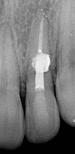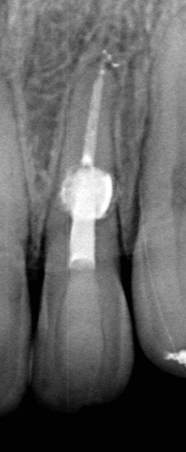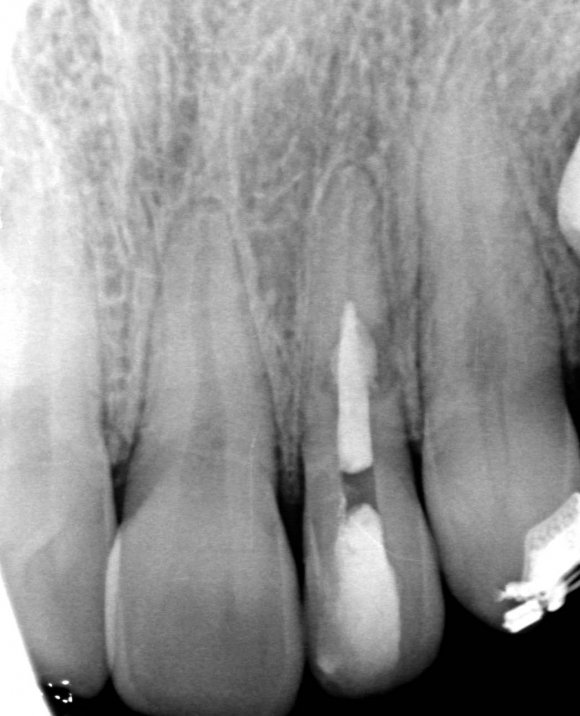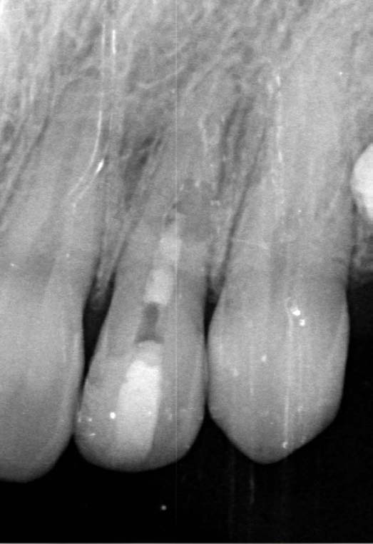 The patient started orthodontic treatment, however, tooth 2.2 was temporarily not included in the orthodontic therapy at the endodontist's request, who was willing to observe it for a year. Furthermore, increased resorption could have been provoked. As of today, the tooth is included in the orthodontic treatment and is being followed up.
