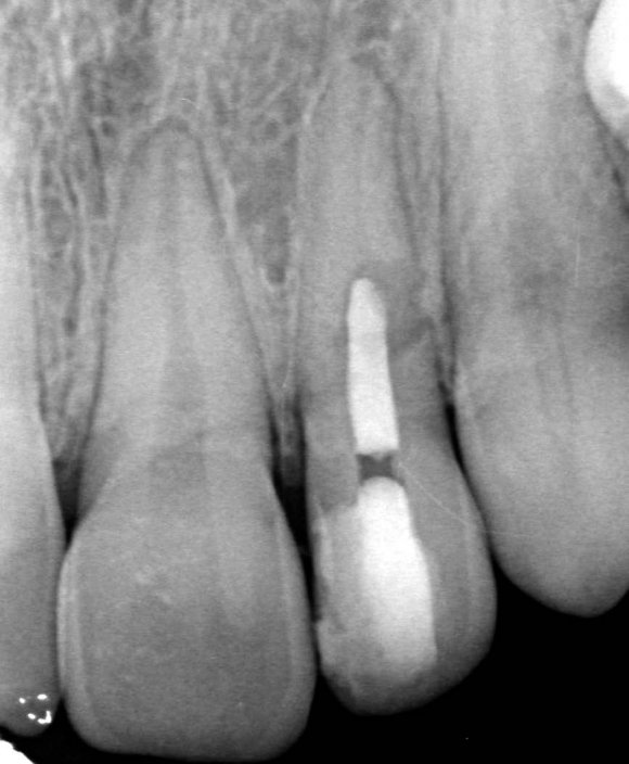 The X-ray snapshots showed signs of internal resorption in tooth 2.2.