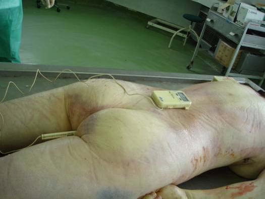 Electric excitability and chemical excitability of muscles present highly important supravital reactions in achieving higher level of precision in estimating the time since death. Most appropriate and accessible muscles for testing by electric stimulation are the muscles around the eyes (m.orbicularis oculi) and the muscles around the mouth (m.orbicularis oris). While the flat muscles of the iris in the eye react to chemical stimulation in a longer post-mortem period. (4,6,7) The postmortem cooling of the body (algor mortis) is one of the significant parameters in estimating the time since death. After death the body temperature regulation is stopped, the corpse becomes poikilothermic resulting in drop of body temperature in order to adjust to the environmental temperature. (1,4) Postmortem lividity starts to manifest and develop immediately after cardiac arrest, i.e. stoppage of blood circulation; it can also start developing before death, during a long comatose period due to disrupted circulation. From the moment of death blood remains fluid and is liable to physical laws moving as influenced by gravity; thus the blood in the blood vessels flows passively towards the distal parts of the body (depending on its position). The time of appearing of postmortem lividity and manifestation extent depends on many reasons among which the most important are the cases of a long comatose agony and massive blood loss. (4,5) Rigor mortis is a specific type of muscle contraction which mainly does not decline from physiological contraction, appears within 1-3 hours after the moment of death. All body muscles contract and stay rigid, without activity potential. This contraction is caused by loosing of the total ATP which is necessary for separation of cross bridges from the actin filaments in the process of relaxation. Muscle stays in rigor until muscle proteins disintegrate which usually occurs by autolysis with enzymes released from lysosomes, 15 to 24 hours after death, depending on external temperature. (4,5) Purpose of this paper is to find a way for faster and more simple determination of the time since death by using several parameters. reaction of any degree -post mortem period shorter than 8 hours.