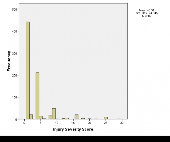 The injury severity score system was used to assess the degree of injury sustained, the limitation of this anatomic based system is that it does not reflect the seriousness of the injuries. It was however chosen because of the simplicity of scoring as various officers were involved.