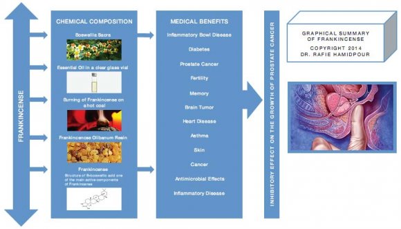 Frankincense has been used in traditional and modern natural medicine for the treatment of variety of illnesses with very minimal side effects. The antiinflammatory, anti-arthritic, anti-proliferative, anti microbial and analgesic effect of this gum resin can reduce the inflammation and pain in the body and relieve the related symptoms of many diseases. The effect of frankincense is remarkable in increasing the number of dendritic segments and branching in the neuron cells of hippocampus, causing more synaptic connections in that area and therefore improvement of learning and memory. Extensive studies on frankincense and its effect on neurophysiology could be a right approach in finding a possible new complementary or alternative natural medicine to control, cure or 20 prevent some variety of neurodegenerative diseases such as Parkinson's and Alzheimer's diseases.